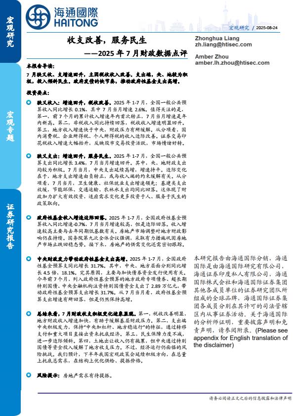 【22449E】【海通国际】2025年7月财政数据点评:收支改善,服务民生 4天前 9月 3 预览结束,本文件为PDF文档,一共13页,请购买后,下载查看 资源下载下载价格59 H币VIP免费升级VIP立即购买下载或充值问题请将订单号发送到:2907878669@qq.com ,我们会在24小时内为您处理 金融分析