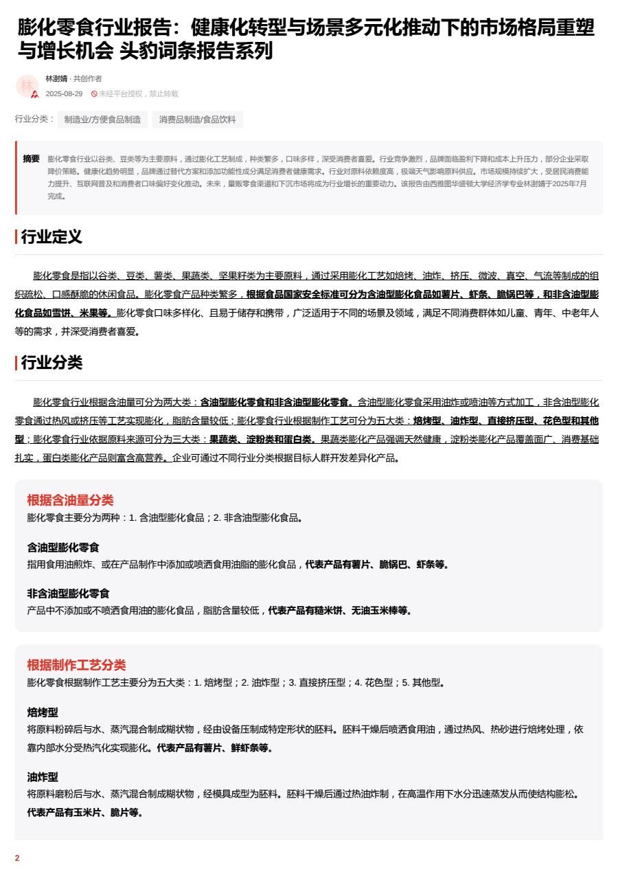 【22251E】【头豹研究院】膨化零食行业报告健康化转型与场景多元化推动下的市场格局重塑与增长机会 头豹词条报告系列 3天前 9月 2 预览结束,本文件为PDF文档,一共20页,请购买后,下载查看 资源下载下载价格59 H币VIP免费升级VIP立即购买下载或充值问题请将订单号发送到:2907878669@qq.com ,我们会在24小时内为您处理 医疗保健