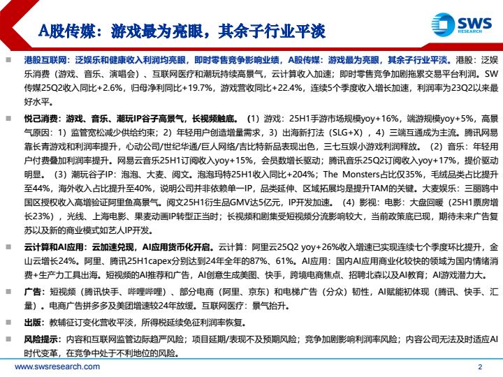 【22404E】【申万宏源】传媒互联网行业25H1中报总结:游戏音乐潮玩高景气,AI带动互联网云加速 3天前 9月 2 预览结束,本文件为PDF文档,一共44页,请购买后,下载查看 资源下载下载价格59 H币VIP免费升级VIP立即购买下载或充值问题请将订单号发送到:2907878669@qq.com ,我们会在24小时内为您处理 娱乐传媒