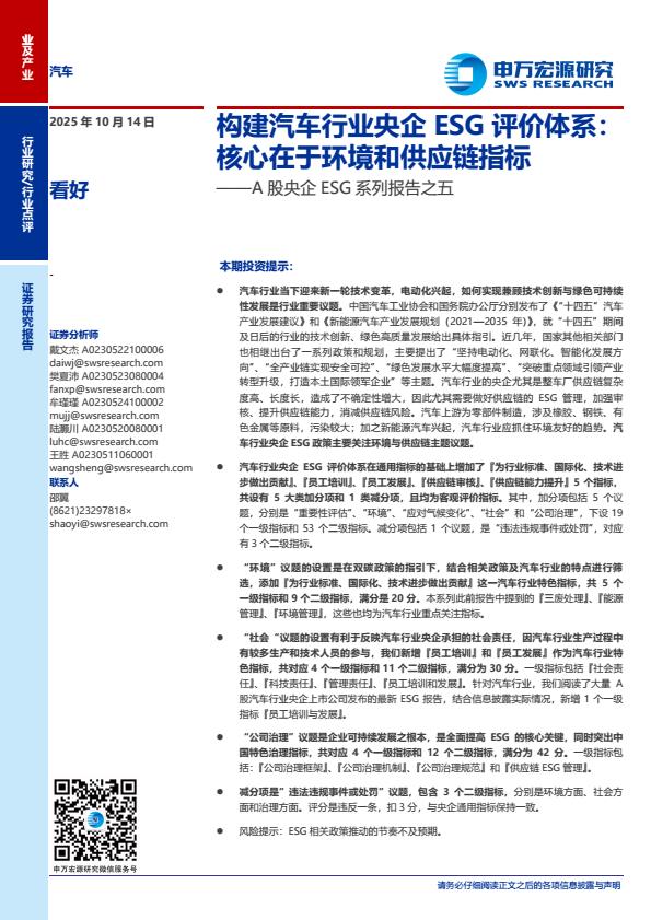 【23427E】【申万宏源】汽车行业A股央企ESG系列报告之五:构建汽车行业央企ESG评价体系,核心在于环境和供应链指标 12小时前 10月 1 预览结束,本文件为PDF文档,一共11页,请购买后,下载查看 资源下载下载价格59 H币VIP免费升级VIP立即购买下载或充值问题请将订单号发送到:2907878669@qq.com ,我们会在24小时内为您处理 汽车物流
