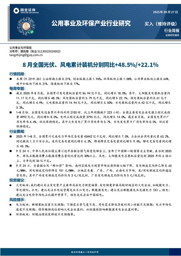【23779E】【国金证券】公用事业及环保产业行业研究:8月全国光伏、风电累计装机分别同比25/25 12小时前 10月 1 预览结束,本文件为PDF文档,一共16页,请购买后,下载查看 资源下载下载价格59 H币VIP免费升级VIP立即购买下载或充值问题请将订单号发送到:2907878669@qq.com ,我们会在24小时内为您处理 科技电子