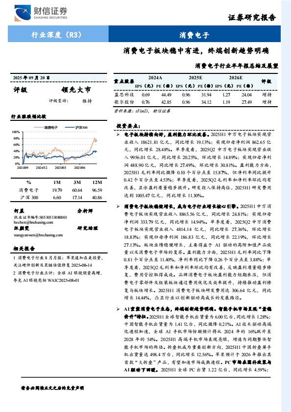 【23773E】【财信证券】消费电子行业半年报总结及展望:消费电子板块稳中有进,终端创新趋势明确 16小时前 10月 1 预览结束,本文件为PDF文档,一共24页,请购买后,下载查看 资源下载下载价格59 H币VIP免费升级VIP立即购买下载或充值问题请将订单号发送到:2907878669@qq.com ,我们会在24小时内为您处理 科技电子