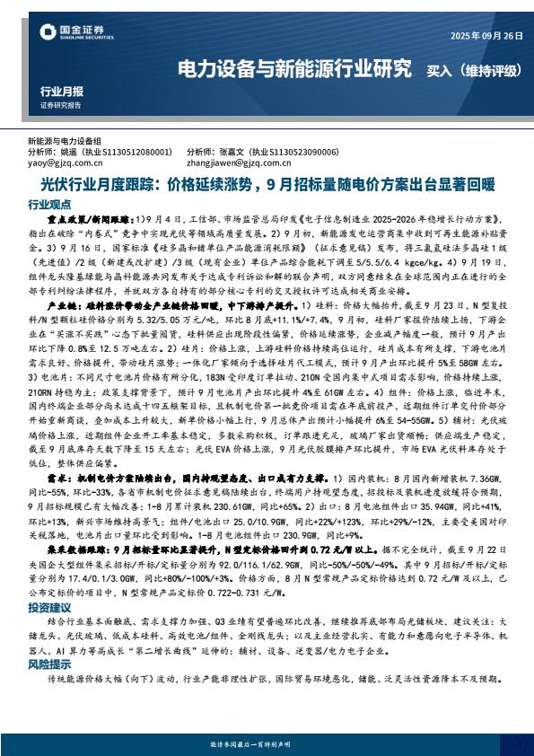 【23772E】【国金证券】光伏行业9月月度跟踪:价格延续涨势,9月招标量随电价方案出台显著回暖 19小时前 10月 1 预览结束,本文件为PDF文档,一共20页,请购买后,下载查看 资源下载下载价格59 H币VIP免费升级VIP立即购买下载或充值问题请将订单号发送到:2907878669@qq.com ,我们会在24小时内为您处理 科技电子
