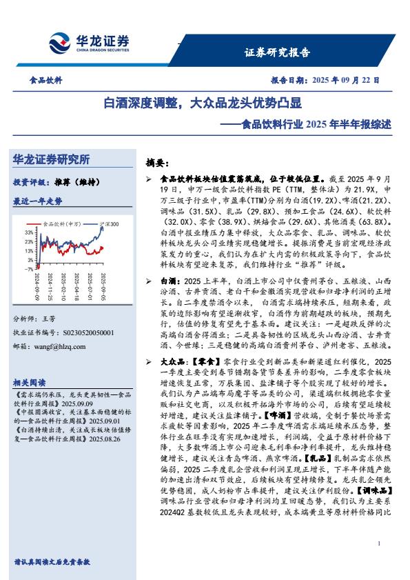 【23756E】【华龙证券】食品饮料行业2025年半年报综述:白酒深度调整,大众品龙头优势凸显 9小时前 10月 1 预览结束,本文件为PDF文档,一共20页,请购买后,下载查看 资源下载下载价格59 H币VIP免费升级VIP立即购买下载或充值问题请将订单号发送到:2907878669@qq.com ,我们会在24小时内为您处理 食品饮料