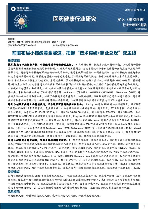 【23731E】【国金证券】医药健康行业研究:前瞻布局小核酸黄金赛道,把握“技术突破+商业兑现”双主线 9小时前 10月 1 预览结束,本文件为PDF文档,一共44页,请购买后,下载查看 资源下载下载价格59 H币VIP免费升级VIP立即购买下载或充值问题请将订单号发送到:2907878669@qq.com ,我们会在24小时内为您处理 医疗保健