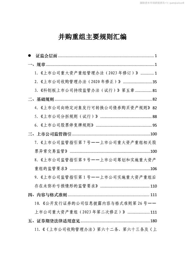 【23350E】2025年并购重组主要规则汇编 19小时前 10月 1 预览结束,本文件为PDF文档,一共295页,请购买后,下载查看 资源下载下载价格59 H币VIP免费升级VIP立即购买下载或充值问题请将订单号发送到:2907878669@qq.com ,我们会在24小时内为您处理 金融分析