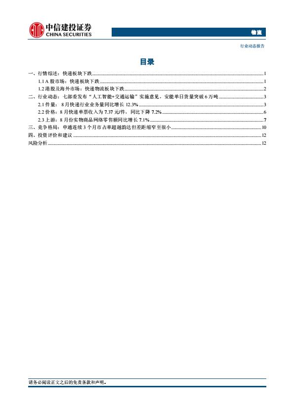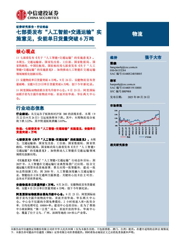 【23719E】【中信建投】物流行业动态:七部委发布“人工智能%2b交通运输”实施意见,安能单日货量突破6万吨 7小时前 10月 2 预览结束,本文件为PDF文档,一共17页,请购买后,下载查看 资源下载下载价格59 H币VIP免费升级VIP立即购买下载或充值问题请将订单号发送到:2907878669@qq.com ,我们会在24小时内为您处理 交通基建