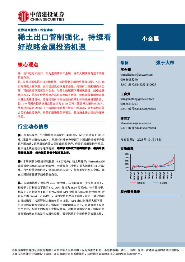 【23714E】【中信建投】小金属行业:稀土出口管制强化,持续看好战略金属投资机遇 20小时前 10月 2 预览结束,本文件为PDF文档,一共10页,请购买后,下载查看 资源下载下载价格59 H币VIP免费升级VIP立即购买下载或充值问题请将订单号发送到:2907878669@qq.com ,我们会在24小时内为您处理 大宗商品