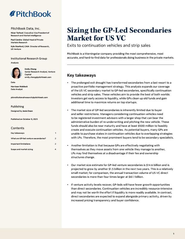 【23338E】PitchBook分析师注:美国风险投资公司GP主导的二级人才市场规模2025 1天前 10月 1 预览结束,本文件为PDF文档,一共6页,请购买后,下载查看 资源下载下载价格59 H币VIP免费升级VIP立即购买下载或充值问题请将订单号发送到:2907878669@qq.com ,我们会在24小时内为您处理 金融分析