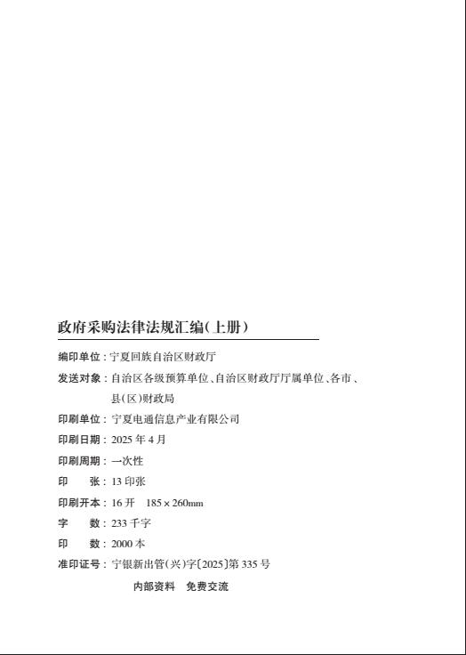 【23310E】【宁夏财政厅】2025政府采购法律法规汇编(上册) 1天前 10月 1 预览结束,本文件为PDF文档,一共208页,请购买后,下载查看 资源下载下载价格59 H币VIP免费升级VIP立即购买下载或充值问题请将订单号发送到:2907878669@qq.com ,我们会在24小时内为您处理 银行金融