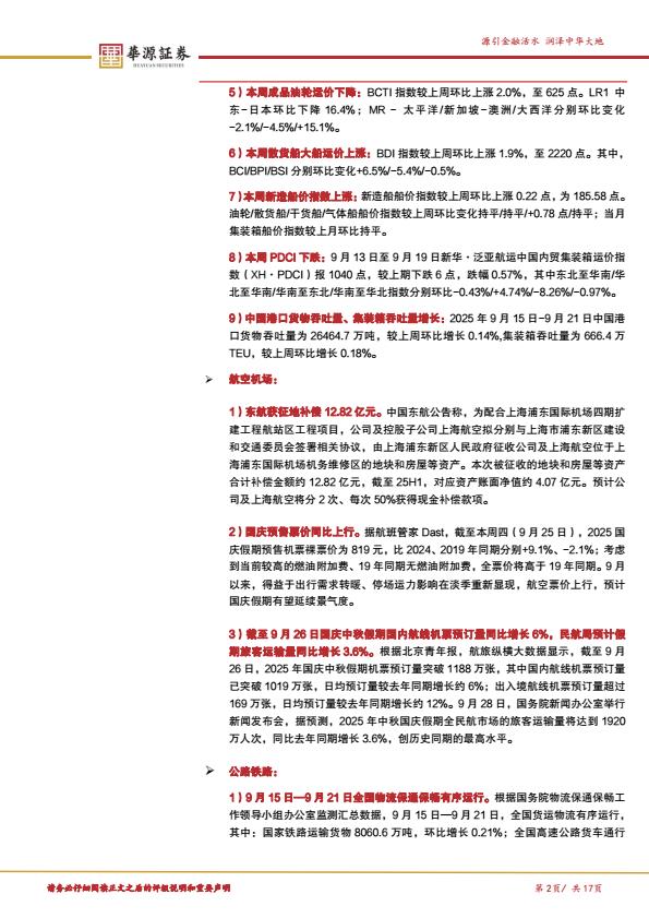 【23661E】【华源证券】交通运输行业周报:国庆中秋假期出行有望迎来景气 18小时前 10月 2 预览结束,本文件为PDF文档,一共17页,请购买后,下载查看 资源下载下载价格59 H币VIP免费升级VIP立即购买下载或充值问题请将订单号发送到:2907878669@qq.com ,我们会在24小时内为您处理 交通基建