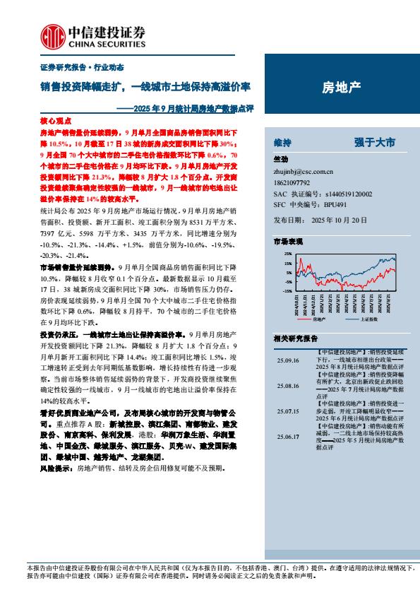 【23657E】【中信建投】房地产行业2025年9月统计局房地产数据点评:销售投资降幅走扩,一线城市土地保持高溢价率 16小时前 10月 1 预览结束,本文件为PDF文档,一共10页,请购买后,下载查看 资源下载下载价格59 H币VIP免费升级VIP立即购买下载或充值问题请将订单号发送到:2907878669@qq.com ,我们会在24小时内为您处理 地产开发