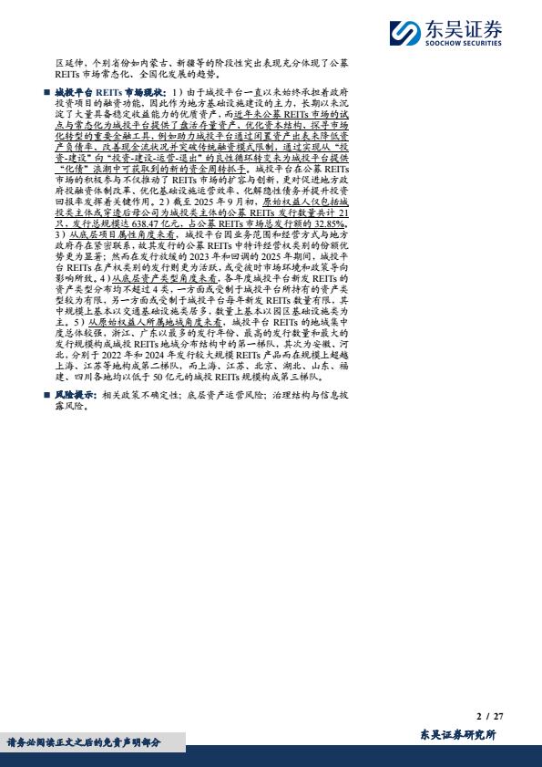 【23649E】【东吴证券】固收深度报告:一文读懂城投平台发行公募REITs产品的过去、现在与未来(回顾篇) 16小时前 10月 1 预览结束,本文件为PDF文档,一共27页,请购买后,下载查看 资源下载下载价格59 H币VIP免费升级VIP立即购买下载或充值问题请将订单号发送到:2907878669@qq.com ,我们会在24小时内为您处理 银行金融