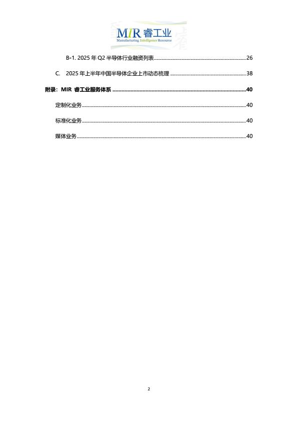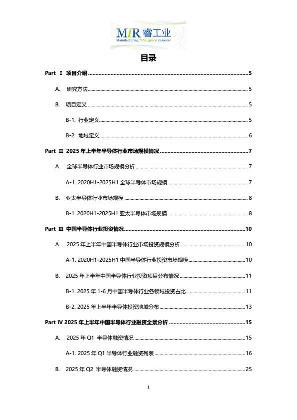 【23270E】【MIR睿工业】2025年上半年中国半导体行业投融资情况分析报告 20小时前 10月 1 预览结束,本文件为PDF文档,一共42页,请购买后,下载查看 资源下载下载价格59 H币VIP免费升级VIP立即购买下载或充值问题请将订单号发送到:2907878669@qq.com ,我们会在24小时内为您处理 科技电子