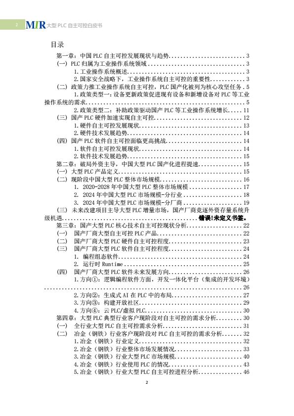 【23267E】【MIR睿工业】2025年中国大型PLC自主可控白皮书 15小时前 10月 1 预览结束,本文件为PDF文档,一共51页,请购买后,下载查看 资源下载下载价格59 H币VIP免费升级VIP立即购买下载或充值问题请将订单号发送到:2907878669@qq.com ,我们会在24小时内为您处理 科技电子