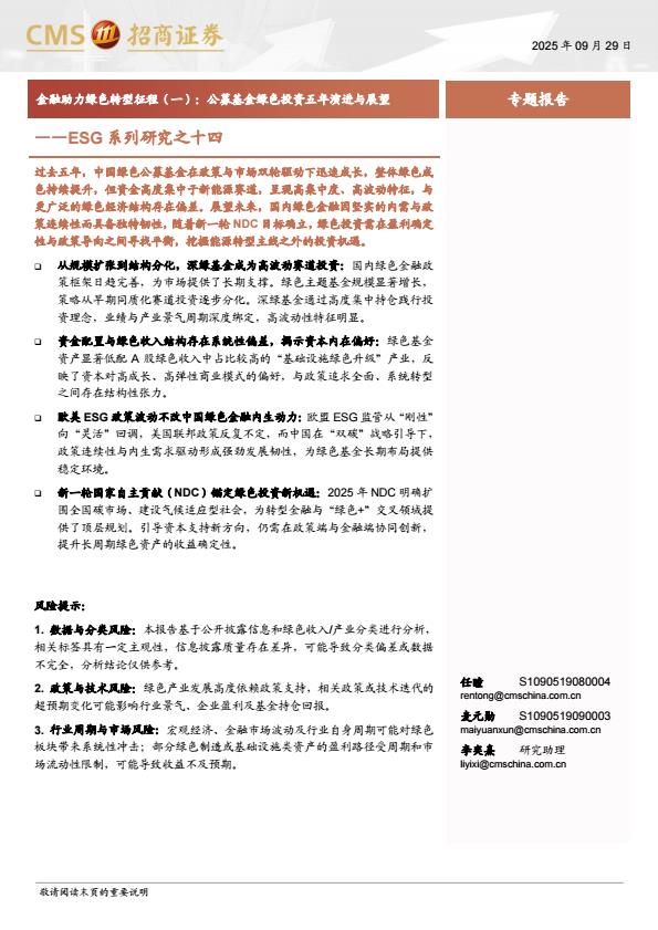 【23623E】【招商证券】ESG系列研究之十四:金融助力绿色转型征程(一),公募基金绿色投资五年演进与展望 11小时前 10月 1 预览结束,本文件为PDF文档,一共25页,请购买后,下载查看 资源下载下载价格59 H币VIP免费升级VIP立即购买下载或充值问题请将订单号发送到:2907878669@qq.com ,我们会在24小时内为您处理 金融分析