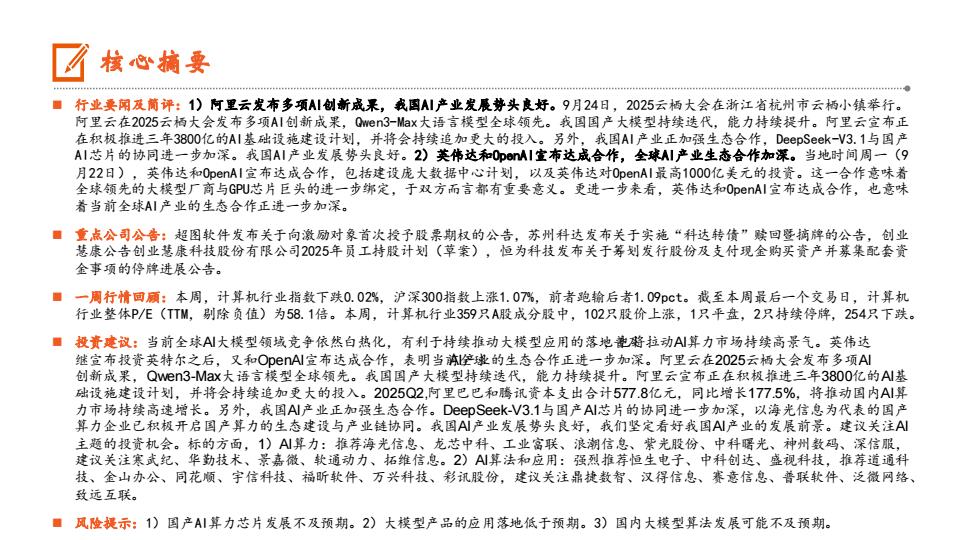 【23592E】【平安证券】计算机行业:阿里云发布多项AI创新成果,我国AI产业发展势头良好 8小时前 10月 1 预览结束,本文件为PDF文档,一共10页,请购买后,下载查看 资源下载下载价格59 H币VIP免费升级VIP立即购买下载或充值问题请将订单号发送到:2907878669@qq.com ,我们会在24小时内为您处理 科技电子