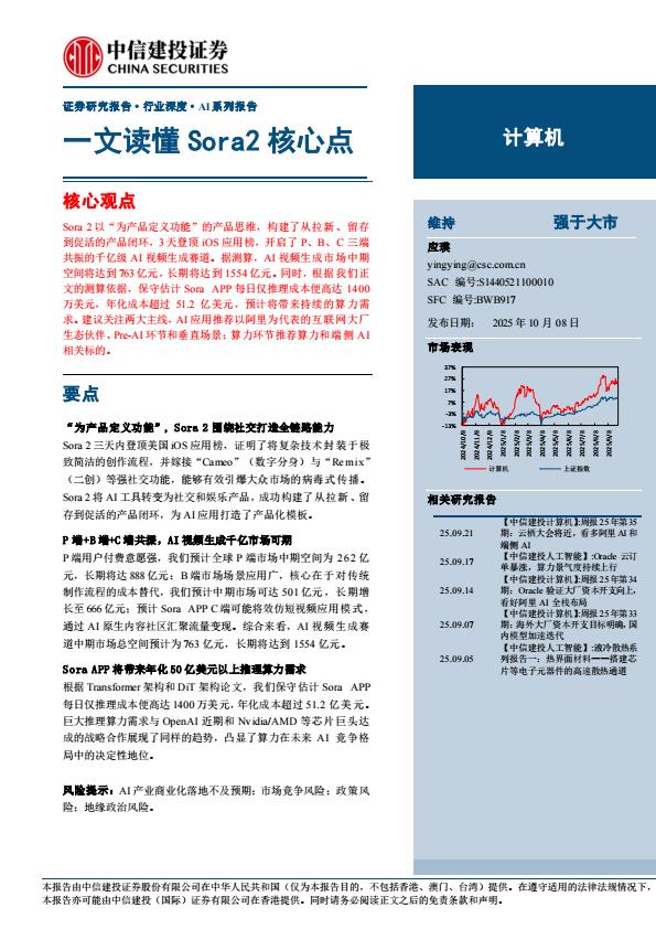 【23507E】【中信建投证券】一文读懂Sora2核心点 2天前 10月 1 预览结束,本文件为PDF文档,一共25页,请购买后,下载查看 资源下载下载价格59 H币VIP免费升级VIP立即购买下载或充值问题请将订单号发送到:2907878669@qq.com ,我们会在24小时内为您处理 科技电子