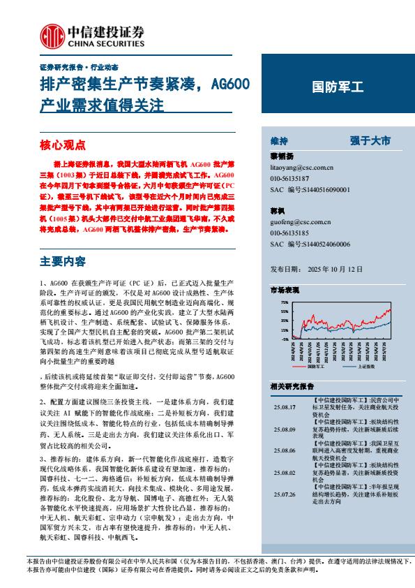 【23495E】【中信建投】国防军工行业动态:排产密集节奏紧凑,AG600产业需求值得关注 3天前 10月 2 预览结束,本文件为PDF文档,一共21页,请购买后,下载查看 资源下载下载价格59 H币VIP免费升级VIP立即购买下载或充值问题请将订单号发送到:2907878669@qq.com ,我们会在24小时内为您处理 军工