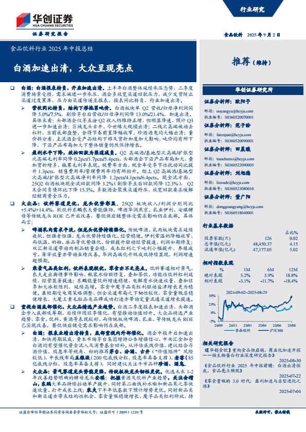 【23085E】食品饮料行业2025年中报总结:白酒加速出清大众呈现亮点 2天前 10月 1 预览结束,本文件为PDF文档,一共32页,请购买后,下载查看 资源下载下载价格59 H币VIP免费升级VIP立即购买下载或充值问题请将订单号发送到:2907878669@qq.com ,我们会在24小时内为您处理 食品饮料