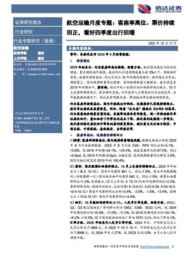 【23486E】【信达证券】航空运输行业:客座率高位、票价持续回正,看好四季度出行回暖 2天前 10月 3 预览结束,本文件为PDF文档,一共17页,请购买后,下载查看 资源下载下载价格59 H币VIP免费升级VIP立即购买下载或充值问题请将订单号发送到:2907878669@qq.com ,我们会在24小时内为您处理 交通基建