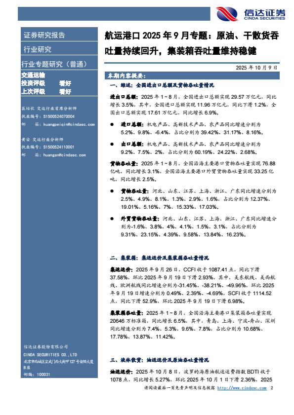 【23480E】【信达证券】航运港口2025年9月专题:原油、干散货吞吐量持续回升,集装箱吞吐量维持稳健 2天前 10月 3 预览结束,本文件为PDF文档,一共23页,请购买后,下载查看 资源下载下载价格59 H币VIP免费升级VIP立即购买下载或充值问题请将订单号发送到:2907878669@qq.com ,我们会在24小时内为您处理 交通基建