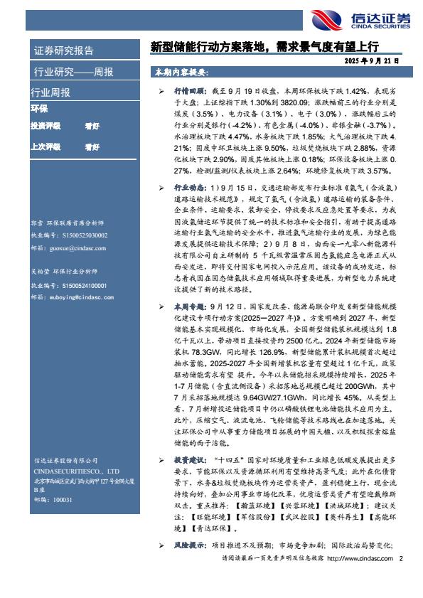 【23478E】【信达证券】环保周报:新型储能行动方案落地,需求景气度有望上行 2天前 10月 2 预览结束,本文件为PDF文档,一共15页,请购买后,下载查看 资源下载下载价格59 H币VIP免费升级VIP立即购买下载或充值问题请将订单号发送到:2907878669@qq.com ,我们会在24小时内为您处理 科技电子