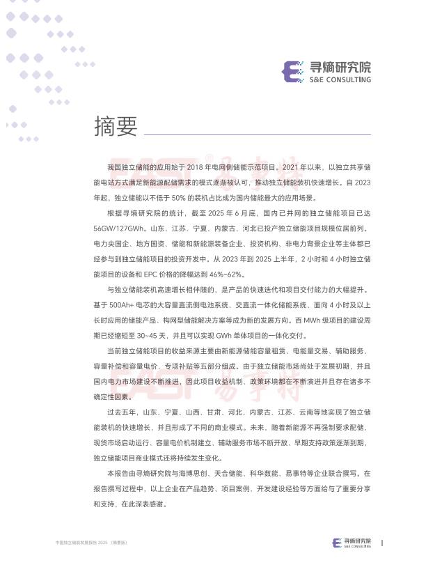【23063E】【寻熵研究院】储能行业:2025中国独立储能发展报告 3天前 10月 1 预览结束,本文件为PDF文档,一共42页,请购买后,下载查看 资源下载下载价格59 H币VIP免费升级VIP立即购买下载或充值问题请将订单号发送到:2907878669@qq.com ,我们会在24小时内为您处理 能源化工