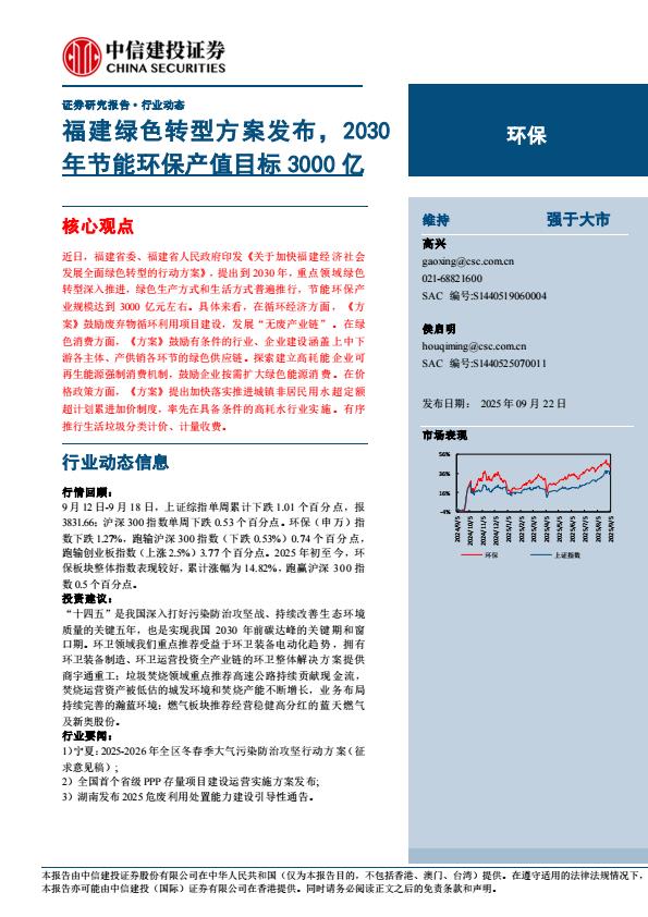 【23465E】【中信建投】环保行业动态:福建绿色转型方案发布,2030年节能环保产值目标3000亿 2天前 10月 1 预览结束,本文件为PDF文档,一共11页,请购买后,下载查看 资源下载下载价格59 H币VIP免费升级VIP立即购买下载或充值问题请将订单号发送到:2907878669@qq.com ,我们会在24小时内为您处理 金融分析