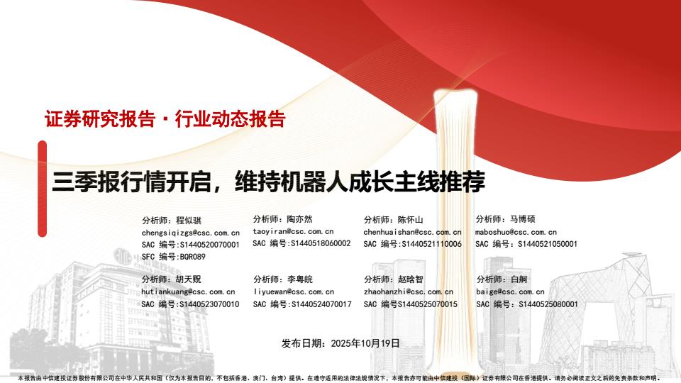 【23462E】【中信建投】机器人行业:三季报行情开启,维持机器人成长主线推荐 3天前 10月 3 预览结束,本文件为PDF文档,一共30页,请购买后,下载查看 资源下载下载价格59 H币VIP免费升级VIP立即购买下载或充值问题请将订单号发送到:2907878669@qq.com ,我们会在24小时内为您处理 科技电子