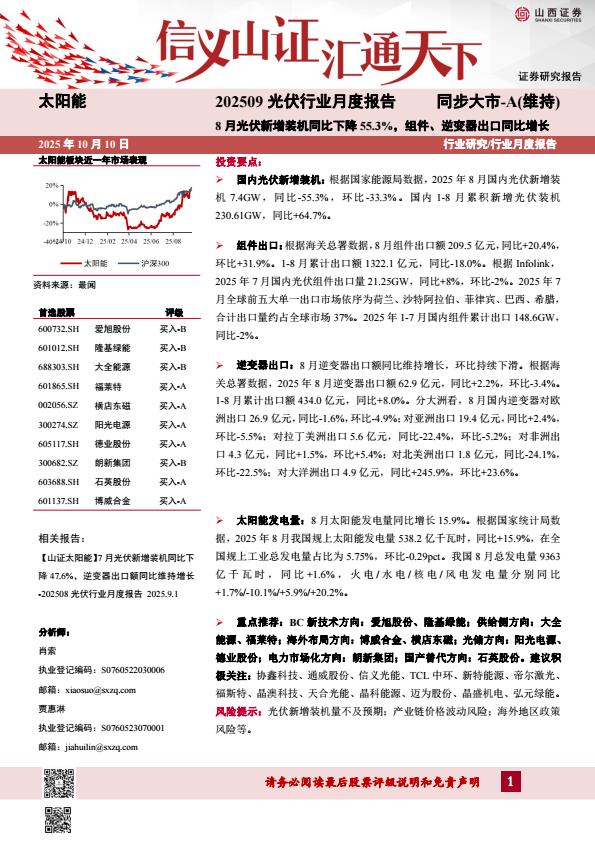 【23457E】【山西证券】光伏行业月度报告:8月光伏新增装机同比下降55.3%25,组件、逆变器出口同比增长251010 1天前 10月 2 预览结束,本文件为PDF文档,一共11页,请购买后,下载查看 资源下载下载价格59 H币VIP免费升级VIP立即购买下载或充值问题请将订单号发送到:2907878669@qq.com ,我们会在24小时内为您处理 金融分析