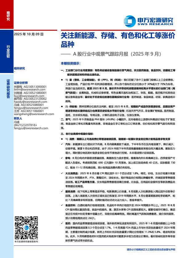 【23447E】【申万宏源】A股行业中观景气跟踪月报(2025年9月):关注新能源、存储、有色和化工等涨价品种 5小时前 10月 3 预览结束,本文件为PDF文档,一共19页,请购买后,下载查看 资源下载下载价格59 H币VIP免费升级VIP立即购买下载或充值问题请将订单号发送到:2907878669@qq.com ,我们会在24小时内为您处理 金融分析