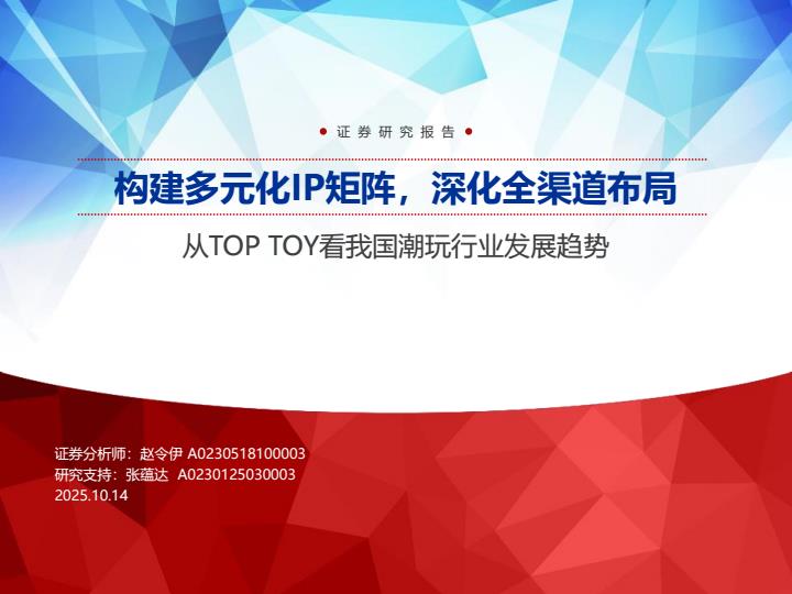 【23446E】【申万宏源】从TOP+TOY看我国潮玩行业发展趋势:构建多元化IP矩阵,深化全渠道布局 3小时前 10月 2 预览结束,本文件为PDF文档,一共33页,请购买后,下载查看 资源下载下载价格59 H币VIP免费升级VIP立即购买下载或充值问题请将订单号发送到:2907878669@qq.com ,我们会在24小时内为您处理 娱乐传媒